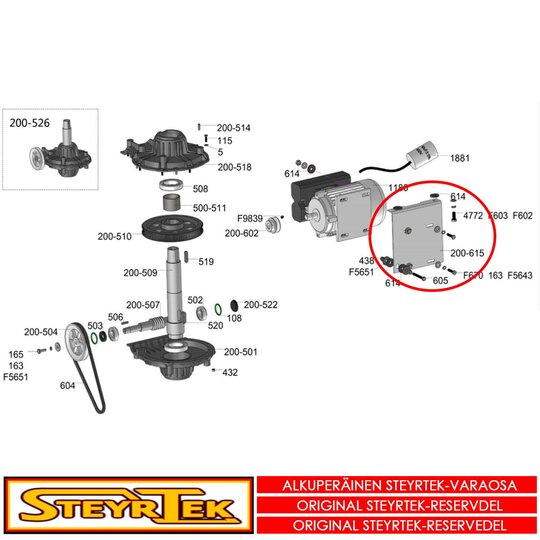 Tämä osa käy valitsemaanne koneeseen. Sama osa käy useaan SteyrTek koneeseen, joten räjäytyskuva ei välttämättä ole samasta koneesta.