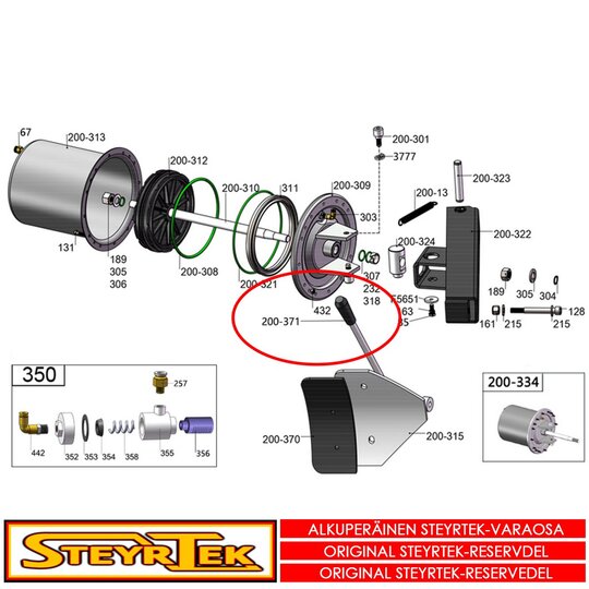 Tämä osa käy valisemaanne koneeseen. Sama osa käy useaan SteyrTek koneeseen, joten räjäytyskuva ei välttämättä ole samasta koneesta.