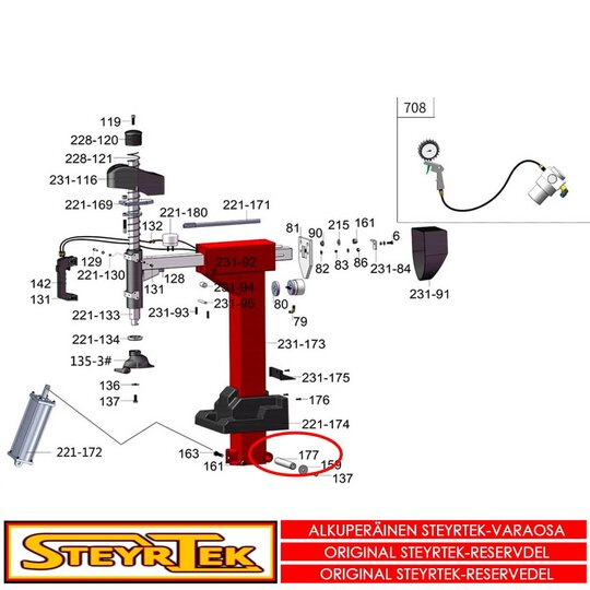 Tämä osa käy valitsemaanne koneeseen. Sama osa käy useaan SteyrTek koneeseen, joten räjäytyskuva ei välttämättä ole samasta koneesta.