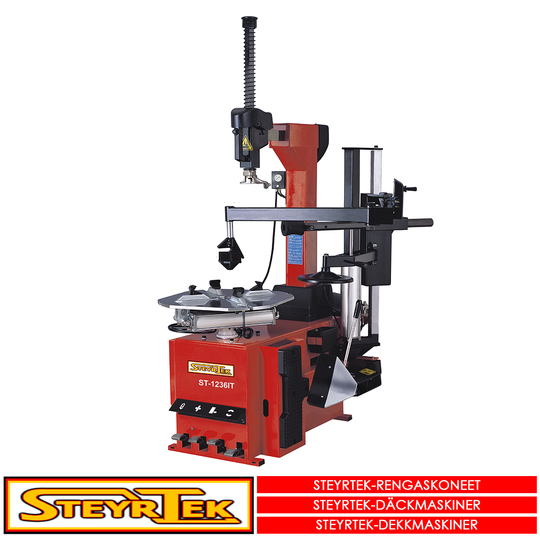 SteyrTek rengaskone ST-6056T malliston uusi rengaskone yhdistetyllä moottori/vaihdelaatikko kokoonpanolla.