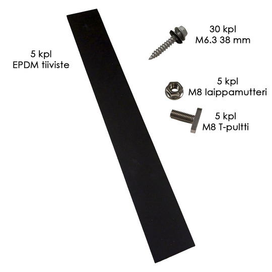 Kontio Solar Strong asennussarja huopa- ja profiilikatto kiinnikkeille – Tarvikkeet 5 kiinnikkeelle