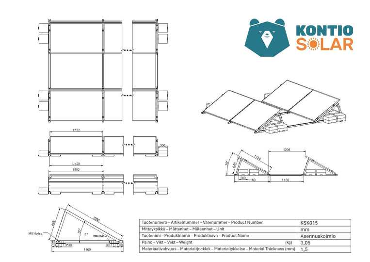 Kontio Solar Strong asennuskolmio 30° – Tehokkaampi energiantuotto