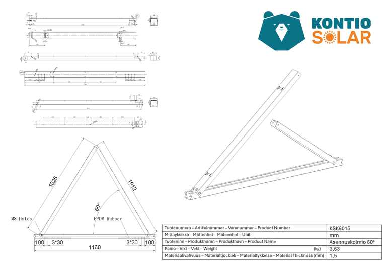 Kontio Solar 60° asennuskolmio – Tehokkaampi energiantuotto