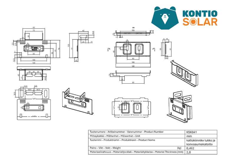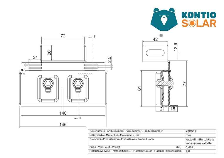 ✔ Yhteensopiva Kontio Solar -asennuskiskojen kanssa