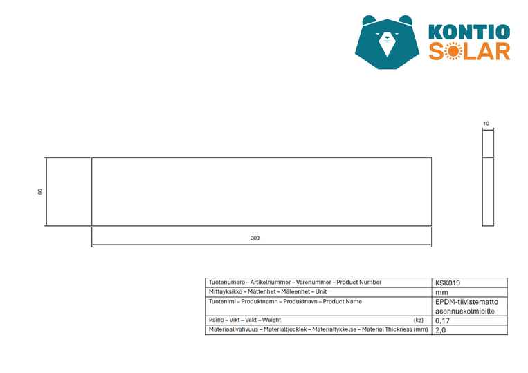 Kontio Solar Strong EPDM -tiivistematto asennuskolmiolle