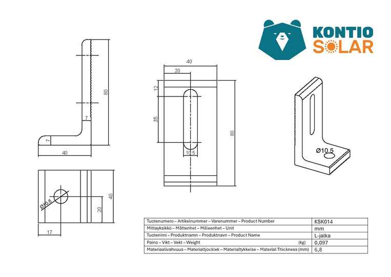L-jalka on suunniteltu tarjoamaan tukevan ja kestävän asennusalustan aurinkopaneeleille ja kiinnittyy helposti profiilikiskoon. Mukana tuleva EPDM-kumisuoja parantaa tiivistystä ja estää korroosiota.