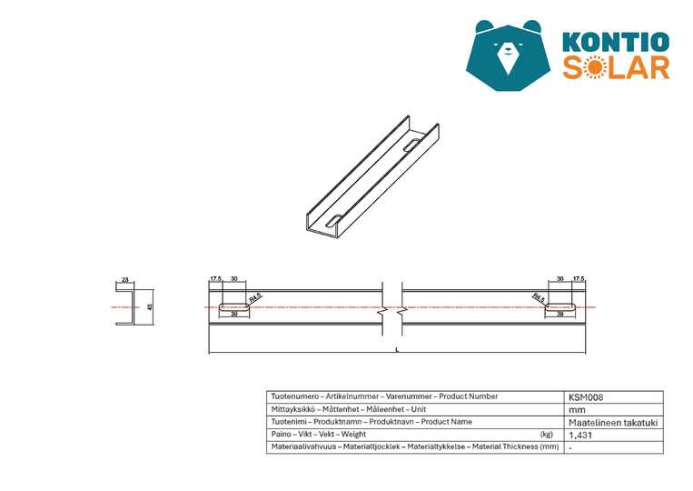 Kontio Solar Strong aurinkopaneelien maatelineen takatuki – nopeaan ja varmaan asennukseen