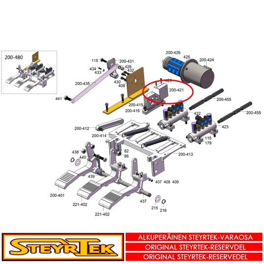 Tämä osa käy valitsemaanne koneeseen. Sama osa käy useaan SteyrTek koneeseen, joten räjäytyskuva ei välttämättä ole samasta koneesta.